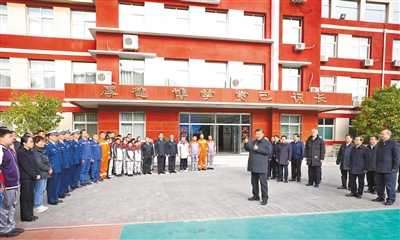 11月10日,中共中央總書記、國家主席、中央軍委主席習近平在北京、河北考察災后恢復重建工作。這是10日上午,習近平在北京門頭溝妙峰山民族學校,親切慰問因公犧牲烈士家屬和參與防汛抗洪救災的基層黨員干部群眾、消防及應急救援人員、國企職工、志愿者代表等。