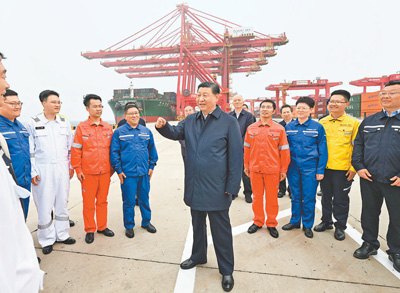 22日下午,習近平首先來到日照港考察。日照港是重要的能源和大宗原材料中轉基地,近年來推進智慧化、綠色化建設,建成順岸開放式全自動化集裝箱碼頭。習近平聽取山東省港口發(fā)展建設和日照港規(guī)劃布局等情況介紹,并察看全自動化集裝箱碼頭作業(yè)場景。他說,日照港是改革開放后新建的港口,近年來推進科技創(chuàng)新,將傳統(tǒng)港口改造升級為現(xiàn)代化港口,不僅貨物吞吐量躋身全國前列,還積累了通過傳統(tǒng)產(chǎn)業(yè)改造升級發(fā)展新質(zhì)生產(chǎn)力的經(jīng)驗,值得肯定。習近平親切慰問港口科技工作者、運營人員、航運人員,希望大家再接再厲、繼續(xù)奮斗,推動日照港管理運營更上一層樓。