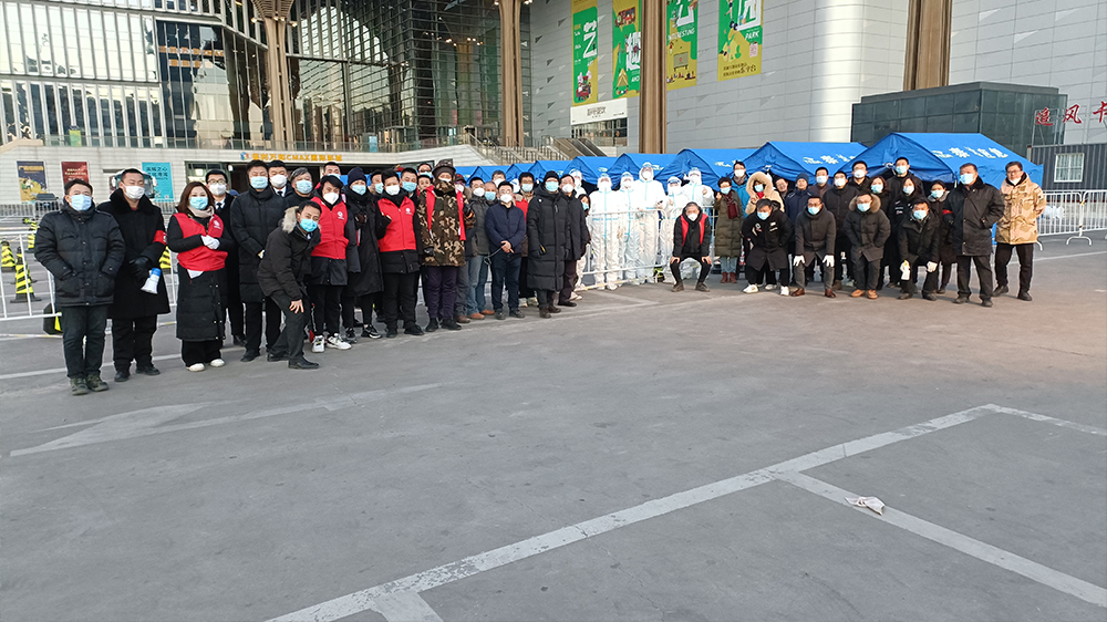 1月9日下午,按照經(jīng)開區(qū)統(tǒng)一安排,成立文化中心核酸檢測點(diǎn),新金融公司負(fù)責(zé)組建工作專班,鮑世崢同志主持召開疫情防控專題會(huì)議,傳達(dá)新區(qū)、經(jīng)開區(qū)疫情防控會(huì)議精神和核酸檢測工作要求,對文化中心開展大規(guī)模核酸檢測工作進(jìn)行部署,成立了現(xiàn)場管理組、核酸采集組、消殺轉(zhuǎn)運(yùn)組。世崢同志要求,全體員工統(tǒng)一思想、立即到崗,投入核酸檢測攻堅(jiān)戰(zhàn),確保前端引導(dǎo)到位、現(xiàn)場精準(zhǔn)組織、檢測有序上站。1月9日下午開始,在公司領(lǐng)導(dǎo)帶領(lǐng)下,文化中心核酸檢測點(diǎn)開始搭建。同時(shí)公司員工集結(jié)完畢,經(jīng)過培訓(xùn),做好了開展大規(guī)模核酸檢測的準(zhǔn)備。同志們連續(xù)工作,徹夜未眠。至10日凌晨,完成現(xiàn)場帳篷搭建、物資儲(chǔ)備等工作,現(xiàn)場開辟了15條檢測通道,以10人一組的方式進(jìn)行檢測。