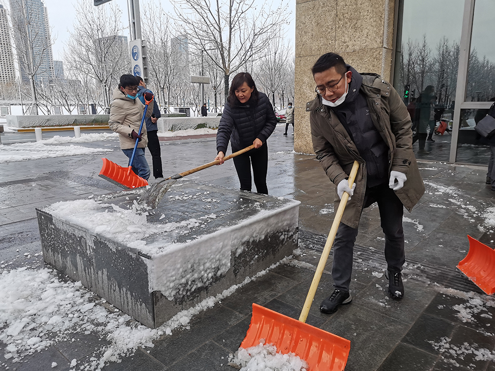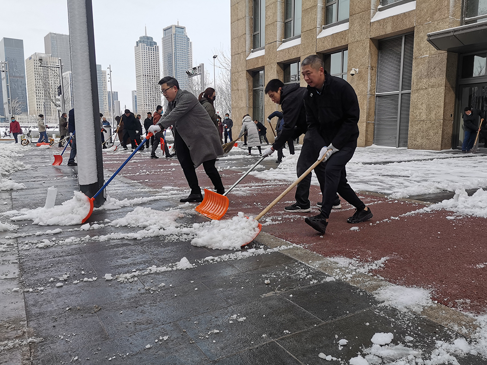 2月28日晚,天津迎來(lái)了一場(chǎng)春雪,平均降雪量達(dá)7.2毫米,導(dǎo)致今日清晨大部分道路受阻,人員出行極為不便。為保障人員出行安全,加快區(qū)域清雪工作進(jìn)度,公司領(lǐng)導(dǎo)第一時(shí)間號(hào)召全體員工與大廈物業(yè)人員共同分擔(dān),志愿參與到除冰鏟雪的義務(wù)勞動(dòng)中。