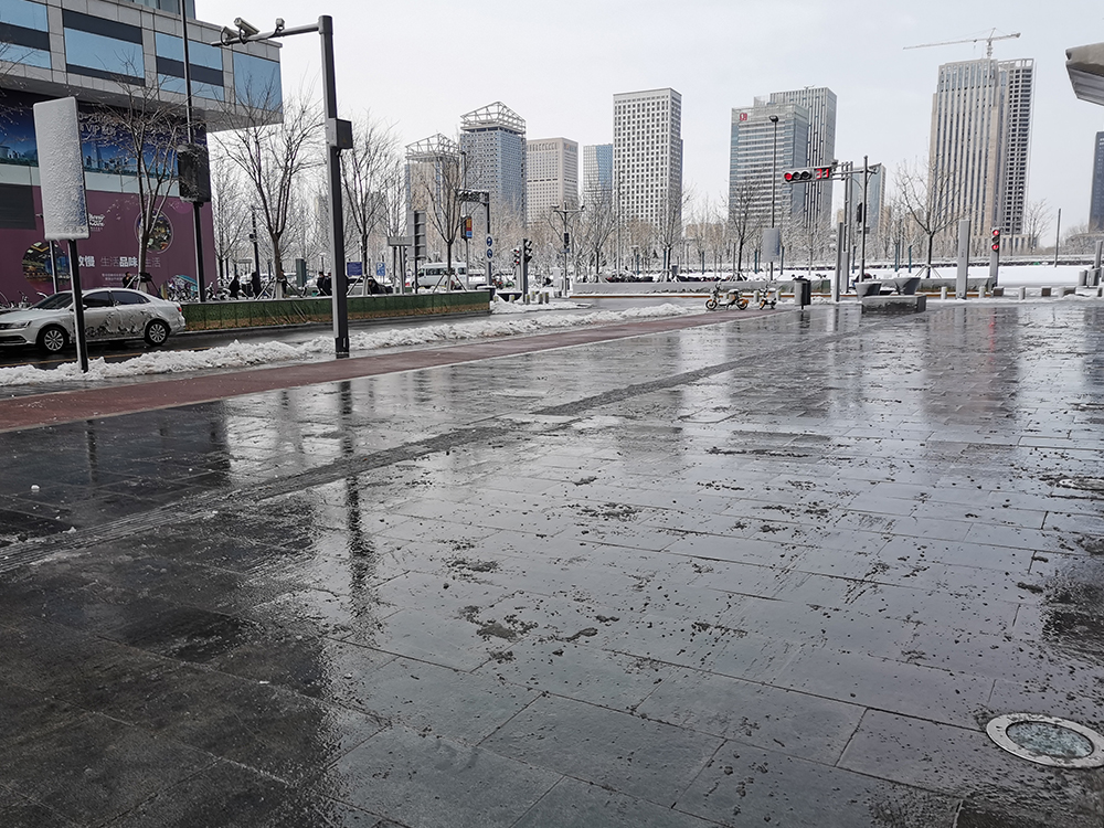盡管大家的臉凍得通紅,有些人還沒有手套,但依然干的熱火朝天,絲毫沒有影響到大家的熱情和效率,截止上午10:10,已經(jīng)配合物業(yè)公司將三片區(qū)域內(nèi)的冰雪清理完畢,路面又恢復(fù)了往日的干凈,保障了往來(lái)大廈人員出行的方便和安全,確保上班通勤正常有序。