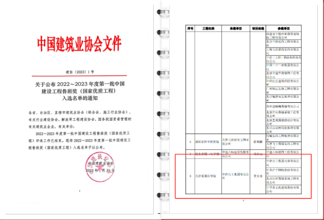2023年1月13日,中國(guó)建筑業(yè)協(xié)會(huì)公布了2022-2023年度第一批中國(guó)建設(shè)工程魯班獎(jiǎng)(國(guó)家優(yōu)質(zhì)工程獎(jiǎng))獲獎(jiǎng)名單,由天津新金融投資有限責(zé)任公司投資建設(shè)的天津茱莉亞學(xué)院項(xiàng)目以?xún)?yōu)質(zhì)工程質(zhì)量和規(guī)范資料管理獲得了評(píng)審專(zhuān)家的一致好評(píng),摘得魯班獎(jiǎng)殊榮。