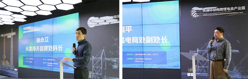 天津市商務(wù)局電商處負責同志,對天津市電商環(huán)境以及形勢做了介紹,全面分析了天津發(fā)展跨境電商的優(yōu)勢、近年發(fā)展成就、制度體系突破創(chuàng)新以及未來工作的著力點。 天津海關(guān)自貿(mào)處負責同志在沙龍上做了題為《發(fā)揮政策優(yōu)勢,支持企業(yè)發(fā)展跨境電商B2B出口“國內(nèi)倉+保稅集貨倉+公共海外倉”業(yè)務(wù)模式》的演講,表示為推動天津海關(guān)支持跨境電商產(chǎn)業(yè),積極探索新型監(jiān)管方式,推動高質(zhì)量發(fā)展,歡迎廣大企業(yè)與海關(guān)積極交流,加強業(yè)務(wù)協(xié)同創(chuàng)新。