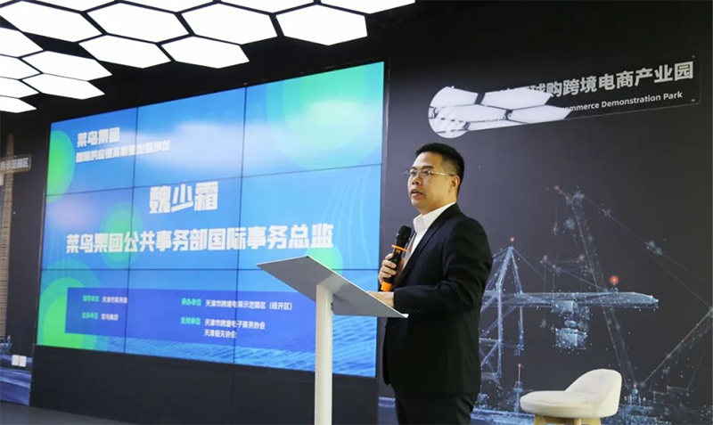 菜鳥集團公共事務(wù)部國際事務(wù)總監(jiān)魏少霜先生介紹了菜鳥集團國際供應(yīng)鏈通過全球完備的基礎(chǔ)設(shè)施建設(shè),打造中國商家發(fā)往全球的首選物流和供應(yīng)鏈服務(wù)平臺,結(jié)合數(shù)智化科技,讓各環(huán)節(jié)有效提速,從而縮短國際物流“距離”,讓商品在“地球村”中快速流通,帶動品牌出海。期待與全體跨境商家攜手合作推動天津跨境電商外貿(mào)行業(yè)發(fā)展。速賣通、中國出口信用保險公司、浙商銀行天津分行等企業(yè)也分別介紹了各自領(lǐng)域關(guān)于跨境電商業(yè)務(wù)相關(guān)優(yōu)質(zhì)服務(wù)和未來新興產(chǎn)業(yè)模式。