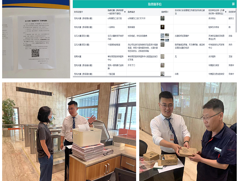 為進(jìn)一步加強(qiáng)公司員工的安全意識(shí),拓展安全風(fēng)險(xiǎn)識(shí)別途徑,完善安全風(fēng)險(xiǎn)管控機(jī)制,構(gòu)建安全利益共同體,形成時(shí)時(shí)處處事事人人關(guān)注安全的氛圍,提升公司綜合管理能力和安全工作的全面把控能力,安全月期間聯(lián)合永升物業(yè)組織開(kāi)展全員“安全隱患隨手拍”活動(dòng),對(duì)積極參與的人員進(jìn)行鼓勵(lì),對(duì)提供有重要價(jià)值信息的員工給予獎(jiǎng)勵(lì)。參加活動(dòng)的人員積極性很高,踴躍查找問(wèn)題,共通過(guò)隨手拍發(fā)現(xiàn)安全隱患20多條。為全面提升區(qū)域的安全管理水平發(fā)揮了積極的作用。
