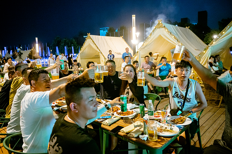 為進(jìn)一步貫徹經(jīng)開區(qū)管委會(huì)于2023年初提出的“于響”片區(qū)以文旅商大融合為新引擎,開啟高質(zhì)量發(fā)展的會(huì)議精神,響應(yīng)將于響地區(qū)建設(shè)為一個(gè)有產(chǎn)業(yè)、有生活、有人氣、消費(fèi)場(chǎng)景豐富、商業(yè)創(chuàng)新活力強(qiáng)勁的朝陽之城理念,于家堡洲際酒店2023年繼續(xù)推出戶外啤酒花園夜市2.0版,力圖將酒店周邊打造成“濱城夜間網(wǎng)紅打卡地”。搭建了戶外大屏、露營(yíng)帳篷及天幕,在河畔夜風(fēng)輕撫下,享受啤酒花園美食盛宴,在啤酒、海鮮、燒烤中感受夏日生活的愜意與瀟灑,令客人充分體驗(yàn)濱城的夏日晚間休閑生活,同時(shí)為濱城市民的生活增添趣味性,為繁榮于響文化旅游區(qū)夜市經(jīng)濟(jì)添加煙火氣。
