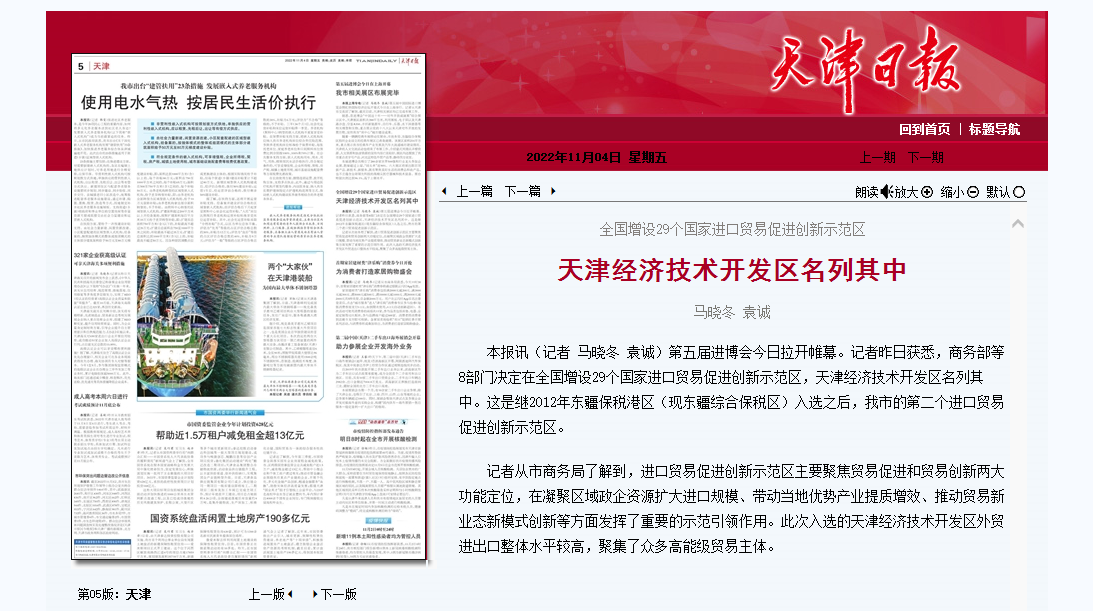 天津日報】全國增設29個國家進口貿(mào)易促進創(chuàng)新示范區(qū) 天津經(jīng)濟技術開發(fā)區(qū)名列其中